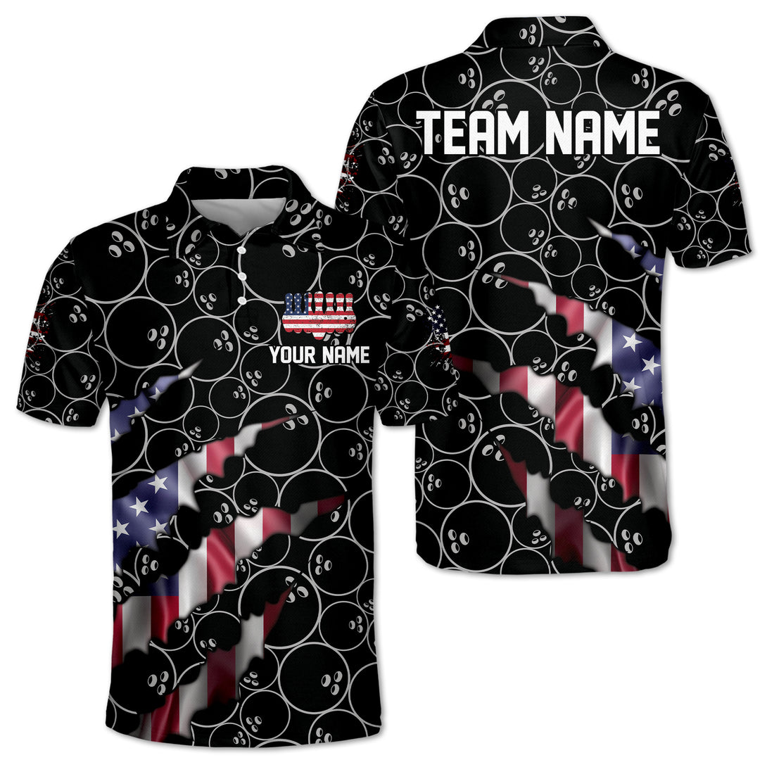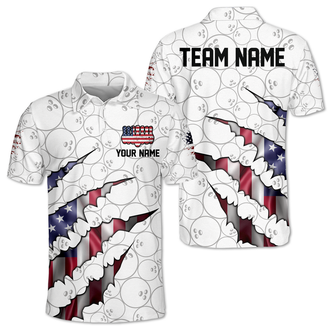Custom White Patriotic Bowling Polo Shirts For Men, Custom 4th Of July Bowling Team Shirts BM0329