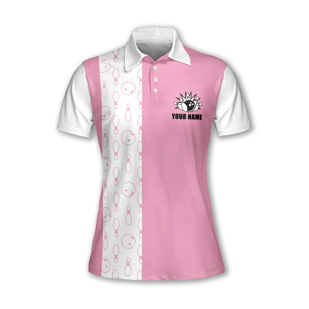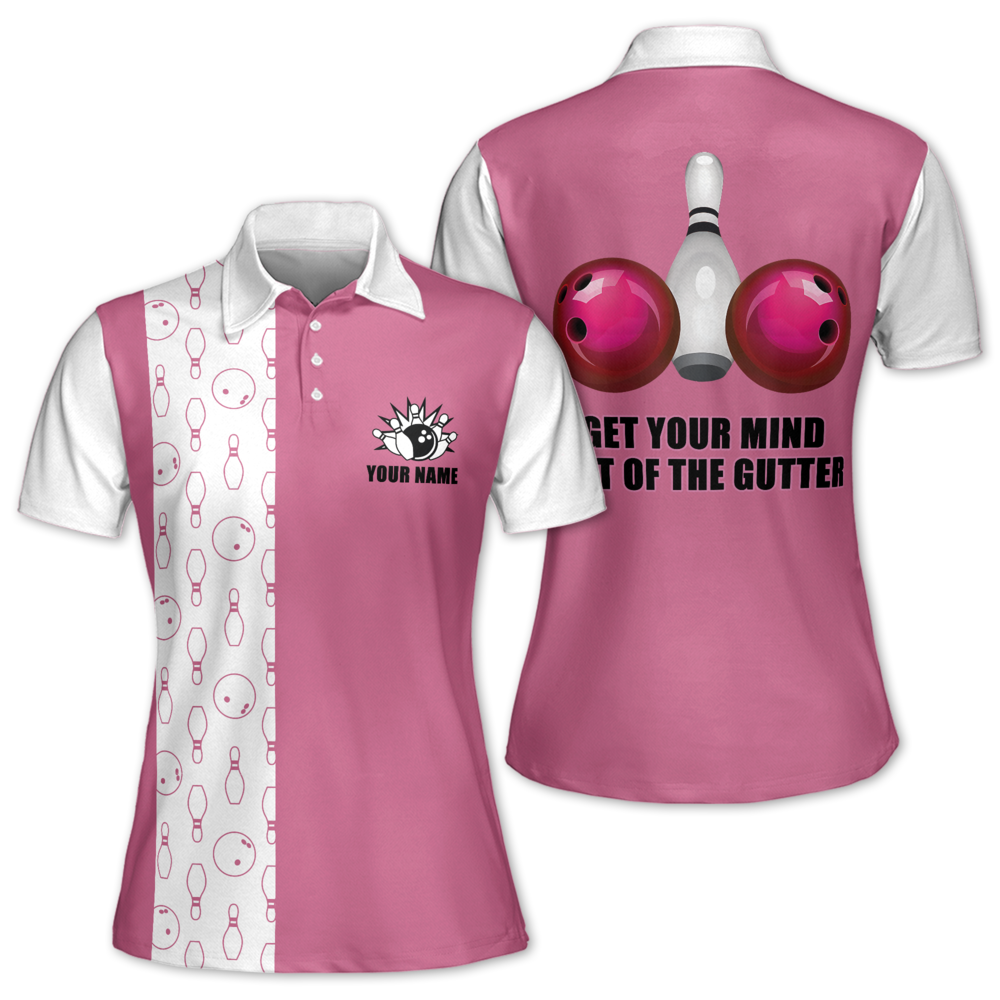 Get Your Mind Out Of The Gutter Custom White And Pink Bowling Polo Shirt Women, Custom Funny Bowling Shirt For Ladies BW0162