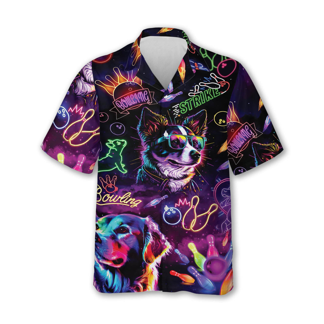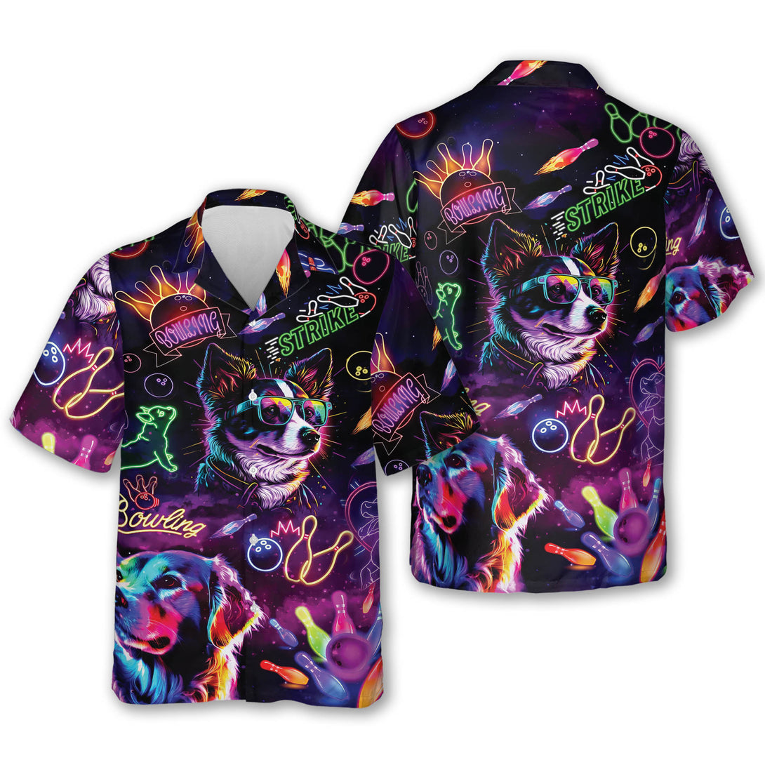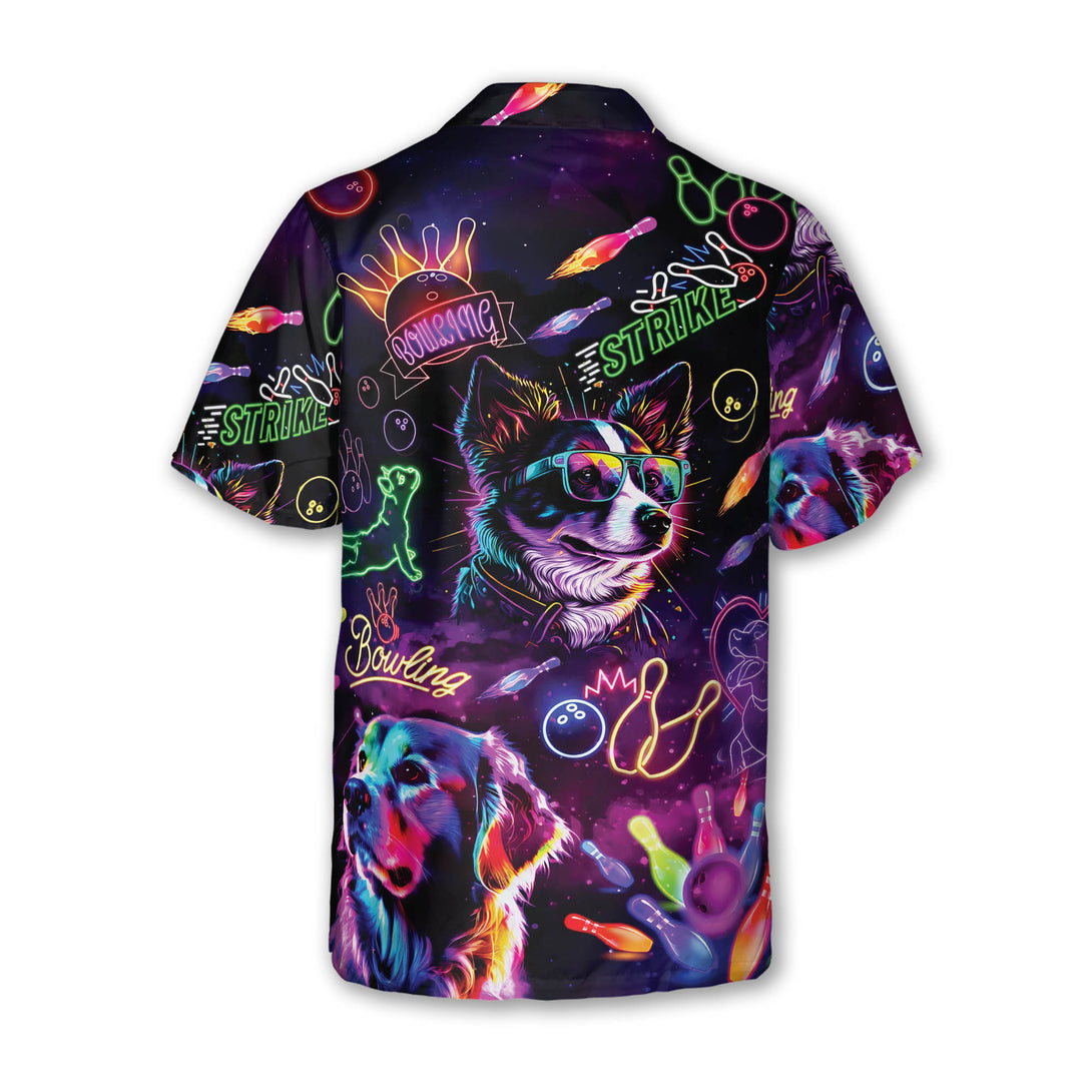 Neon Dog Bowling Hawaiian Shirt Womens, Dog Bowling Shirt For Women BZ0250