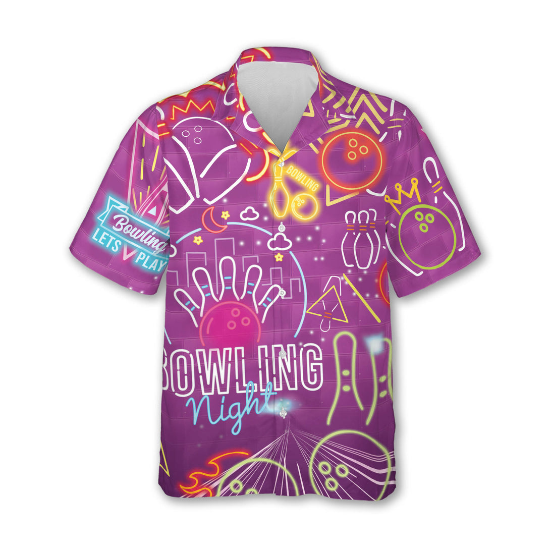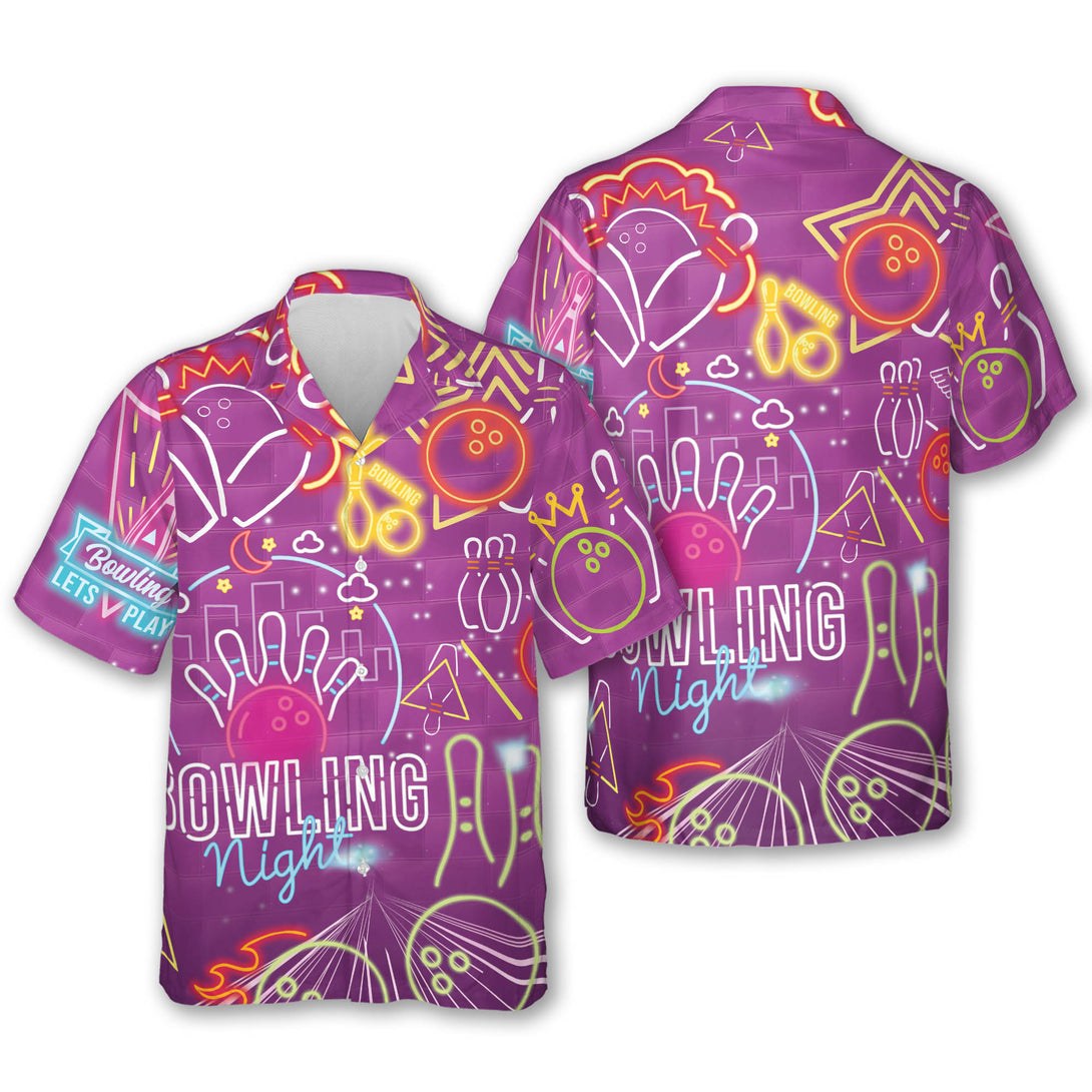Neon Purple Hawaiian Bowling Shirts For Women, Women's Retro Bowling Shirts Purple BZ0249