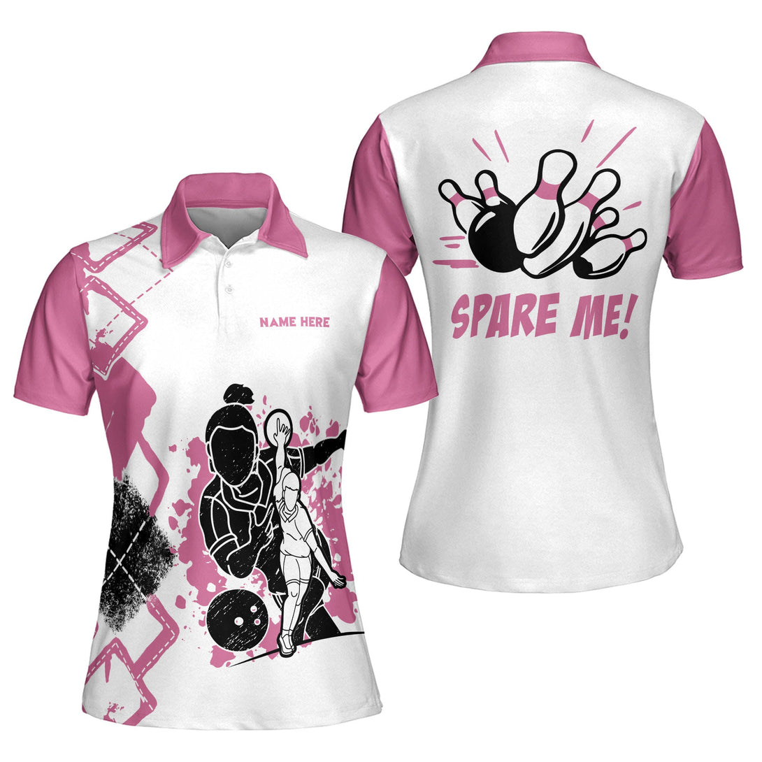 Custom Spare Me Bowling Polo Shirt For Women, Custom Women's White And Pink Funny Bowling Shirt BW0056