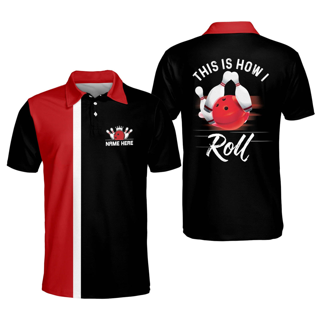 Custom This Is How I Roll Bowling Polo Shirt For Men, Custom Black And Red Funny Bowling Shirt BM0223
