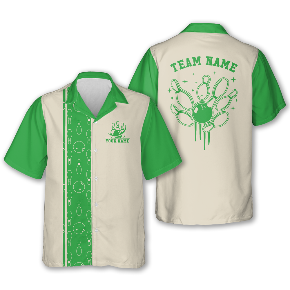 Red And Beige Custom Retro Hawaiian Bowling Shirt For Mens, Custom Retro Bowling Team Shirts HB0187