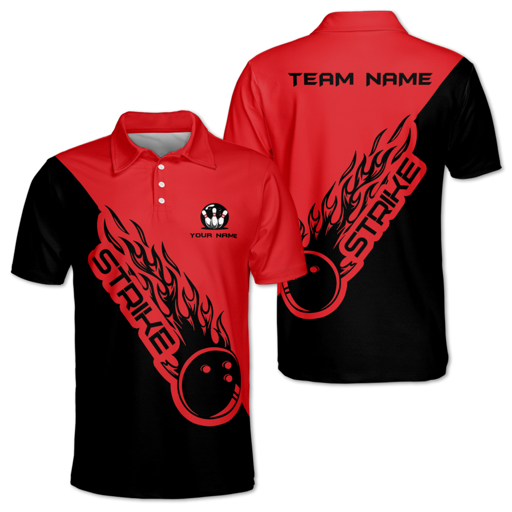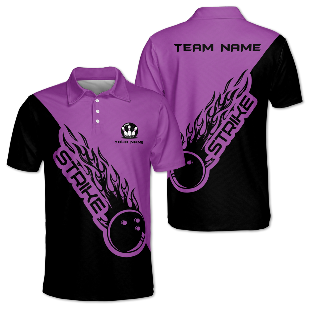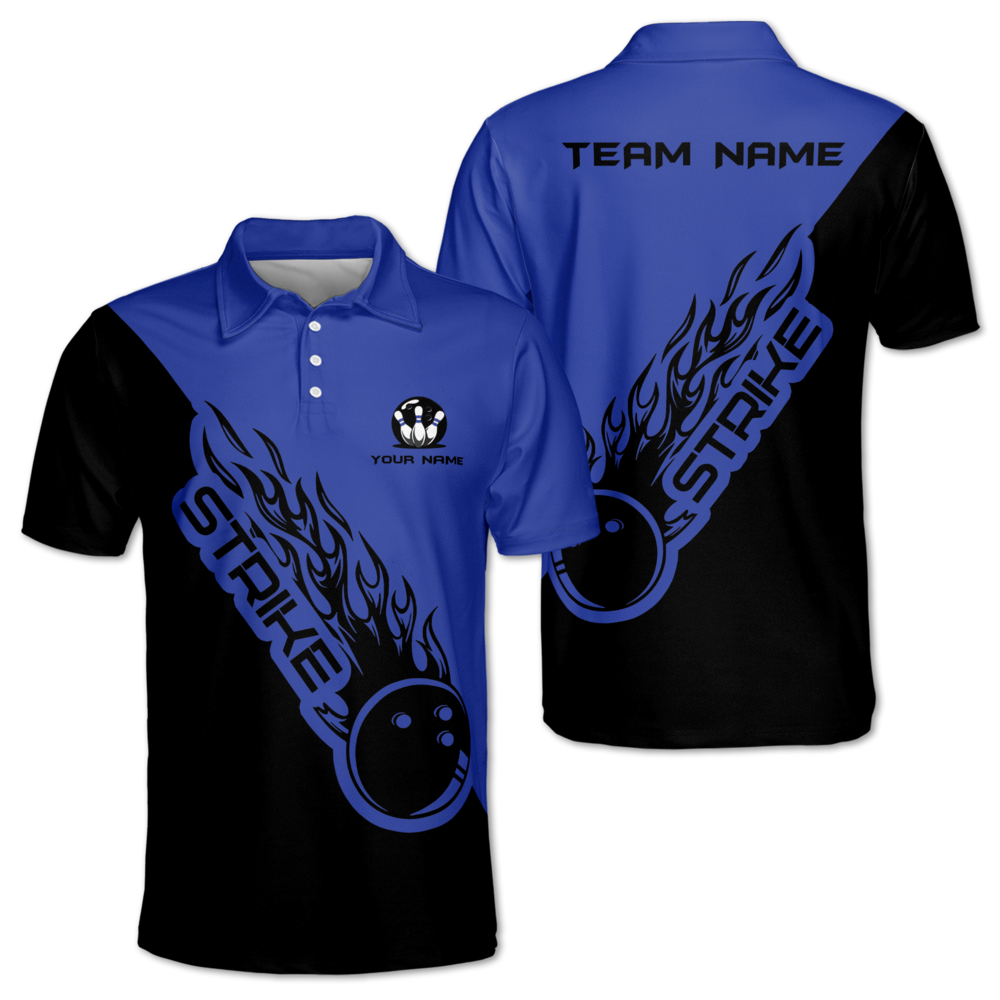 Strike Custom Black And White Bowling Polo Team Shirt Mens, Custom Bowling Team Shirts BM0337