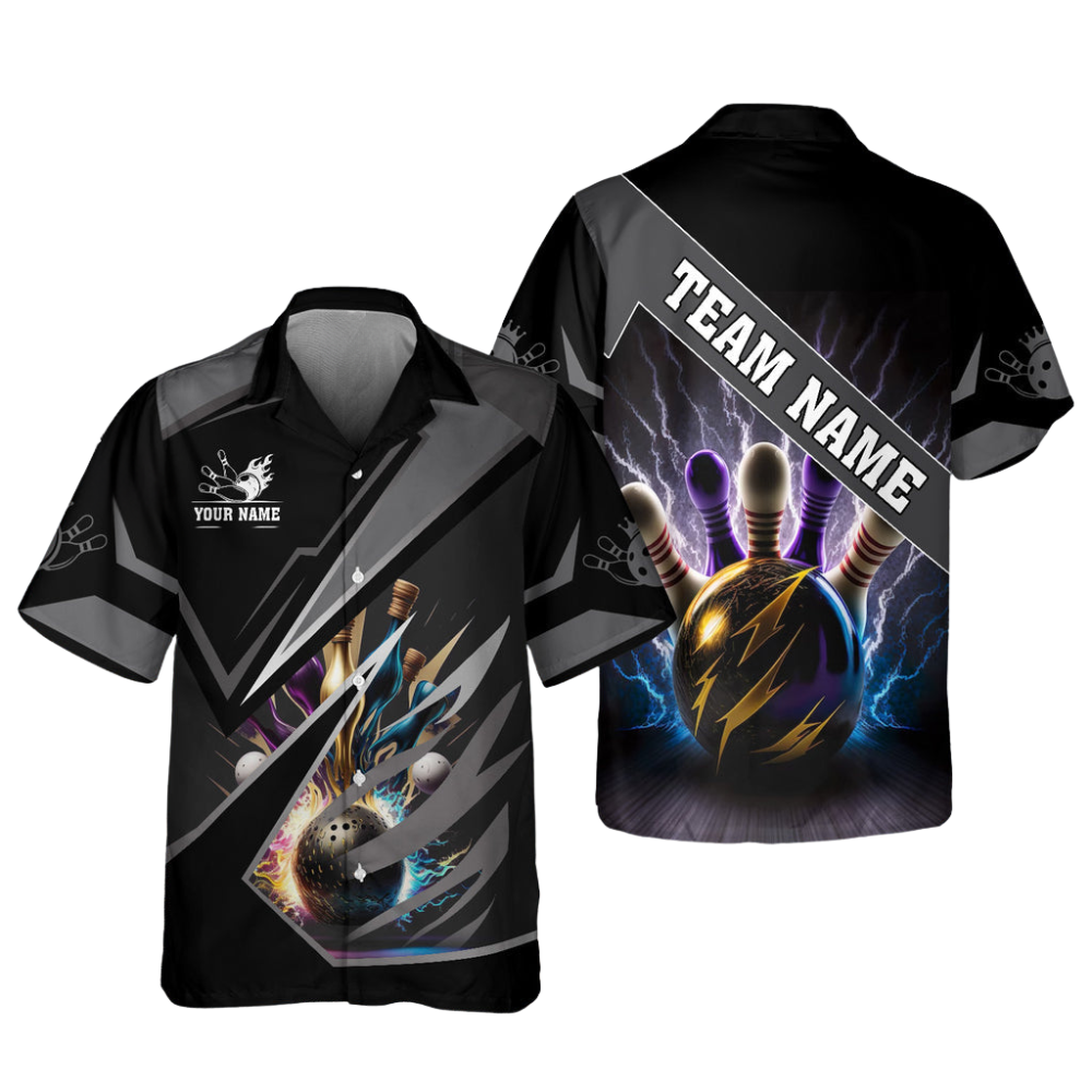 Custom Team Black Bowling Hawaiian Shirt For Men, Custom Bowling Shirt HO5664